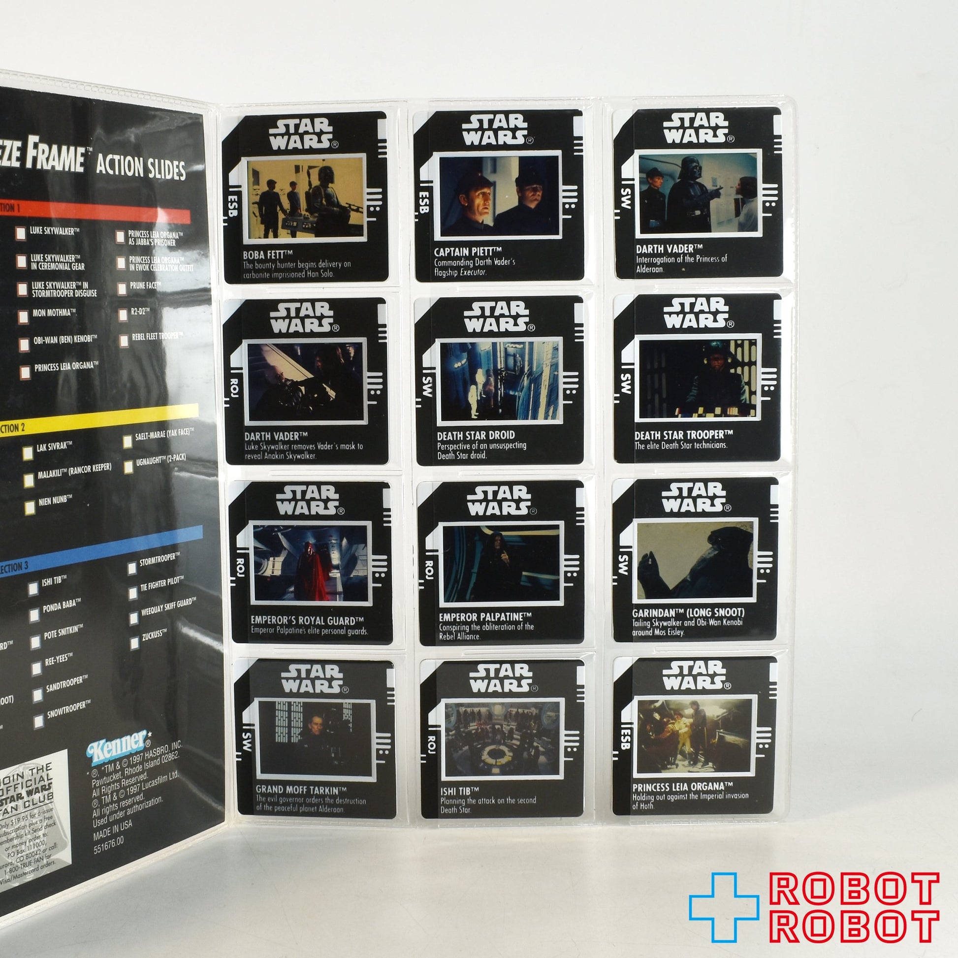 Star Wars POTF2 Freeze Frame slide viewer LUKE'S MACRO BINOCULARS Slide & 58 pcs of slides w/Display Holder