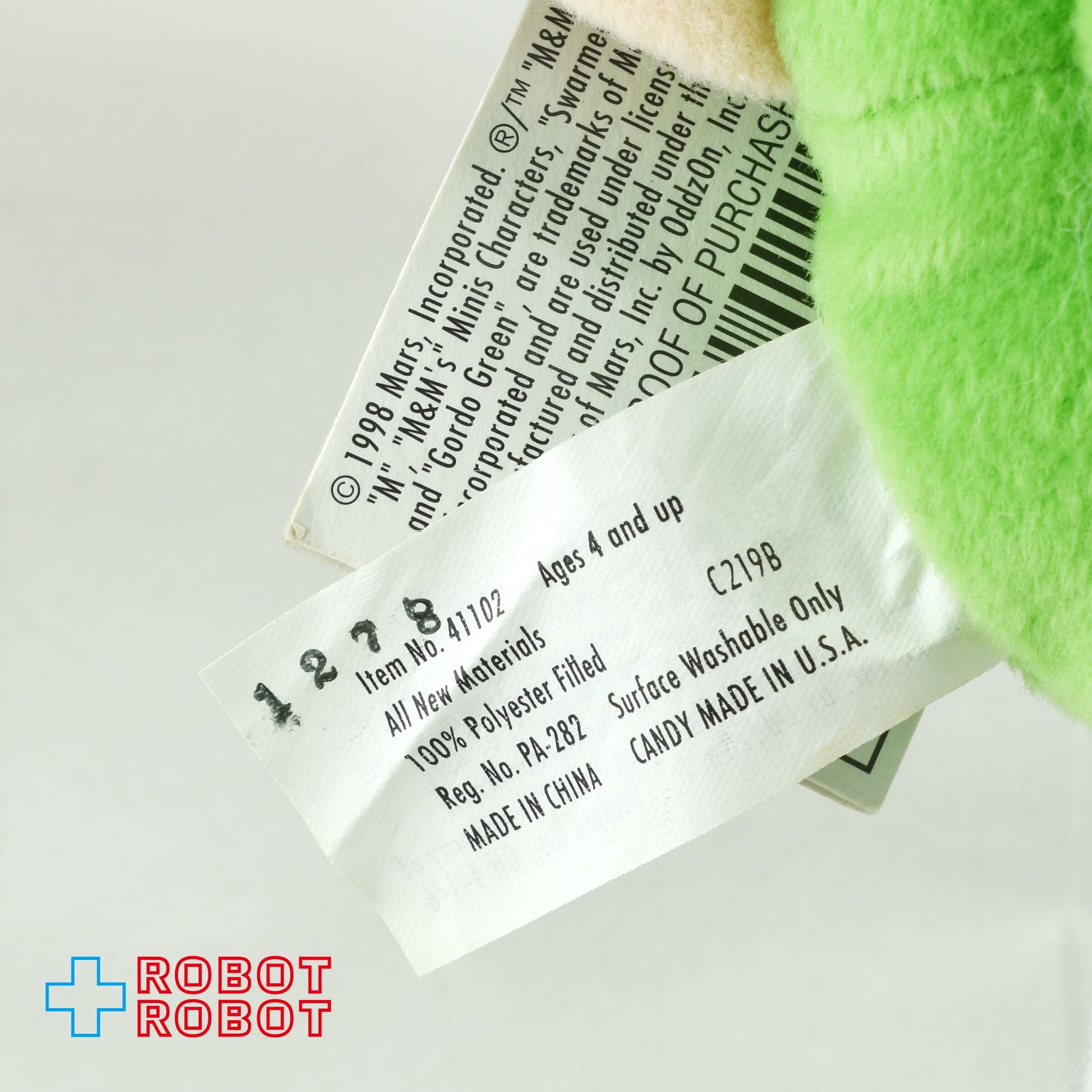 M&M's ミニズ サワーミーズ プラッシュ コレクティブル グリーン エムアンドエムズ ぬいぐるみ人形 1998 紙タグ付き