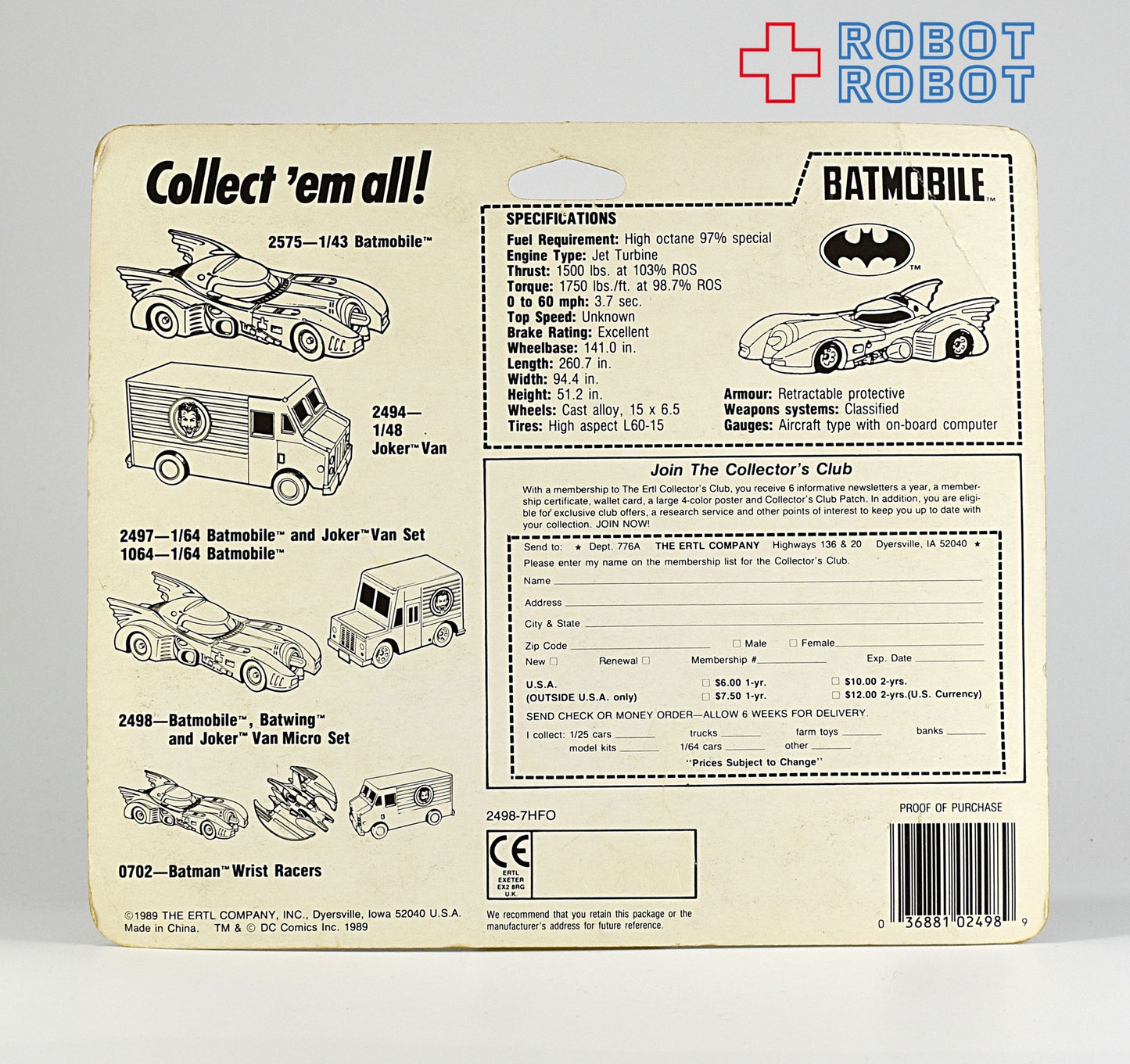 ERTL バットマン マイクロ・ダイキャスト・ビークル 3体セット 1989 未開封