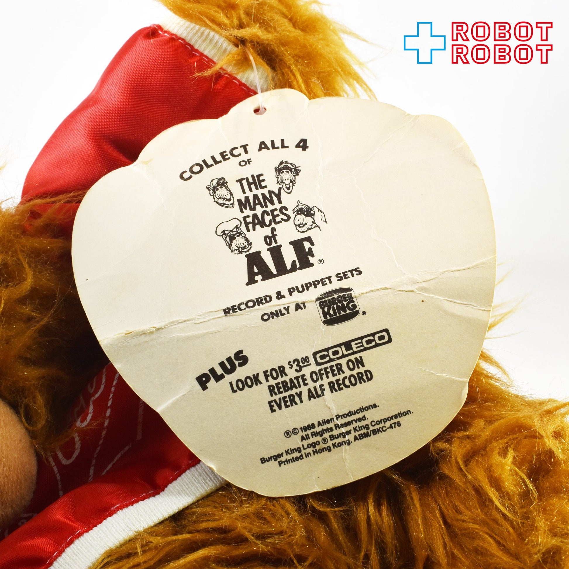 バーガーキング アルフ 手踊り ぬいぐるみ 野球 1988 紙タグ付