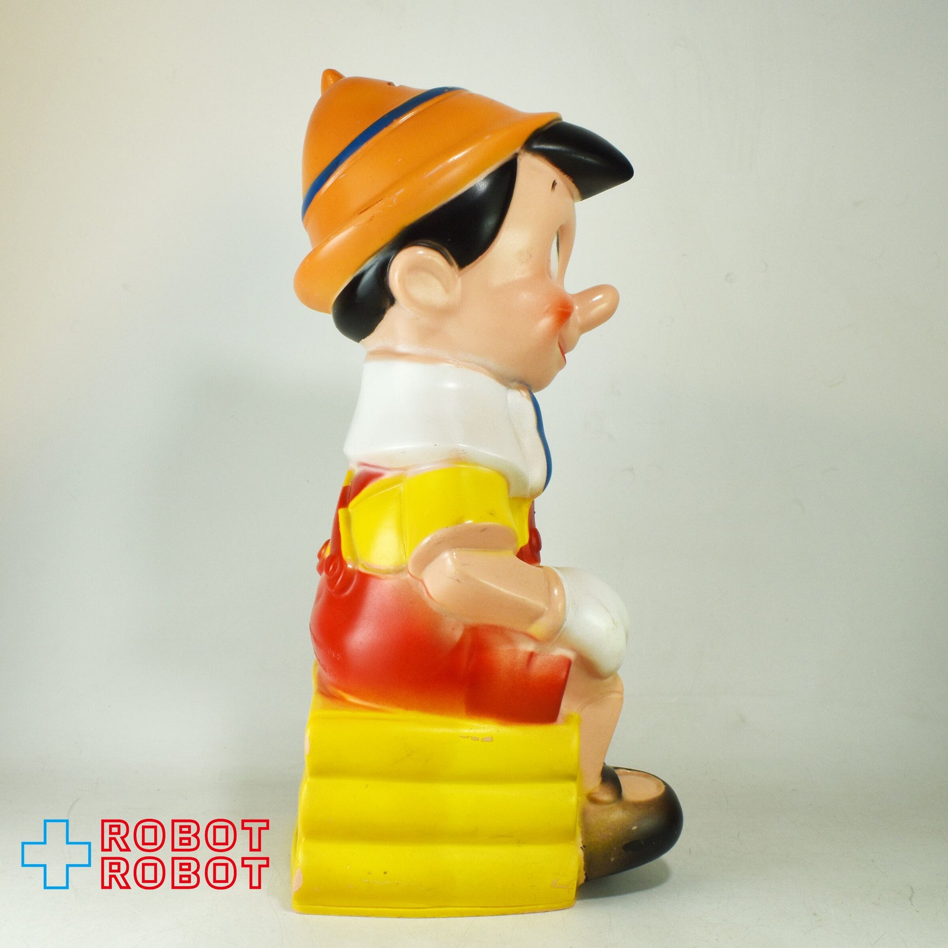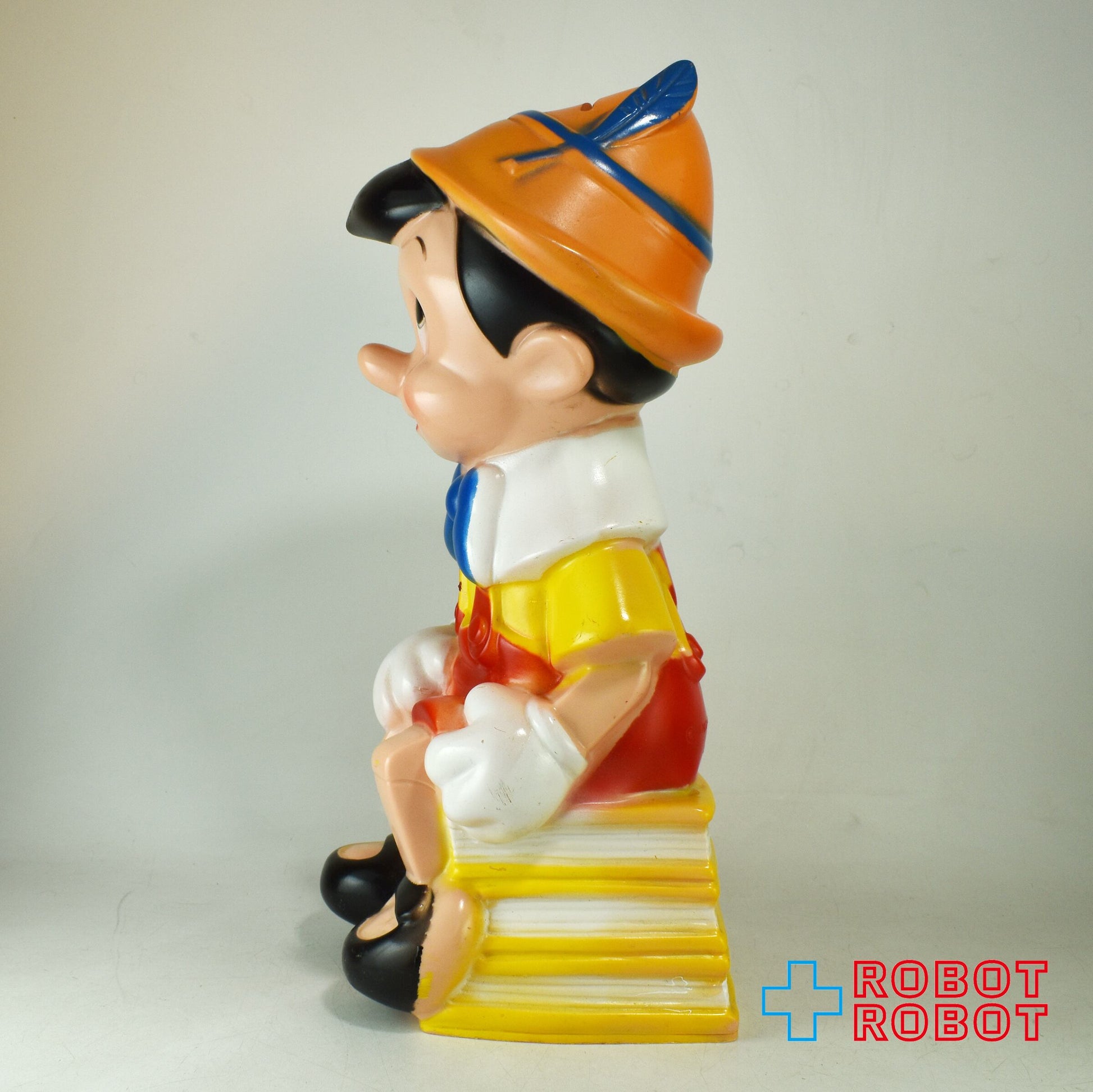 プレイパル社 ディズニー ピノキオ ラージ 薄茶帽子水色羽 ソフビ貯金箱 バンク フィギュア