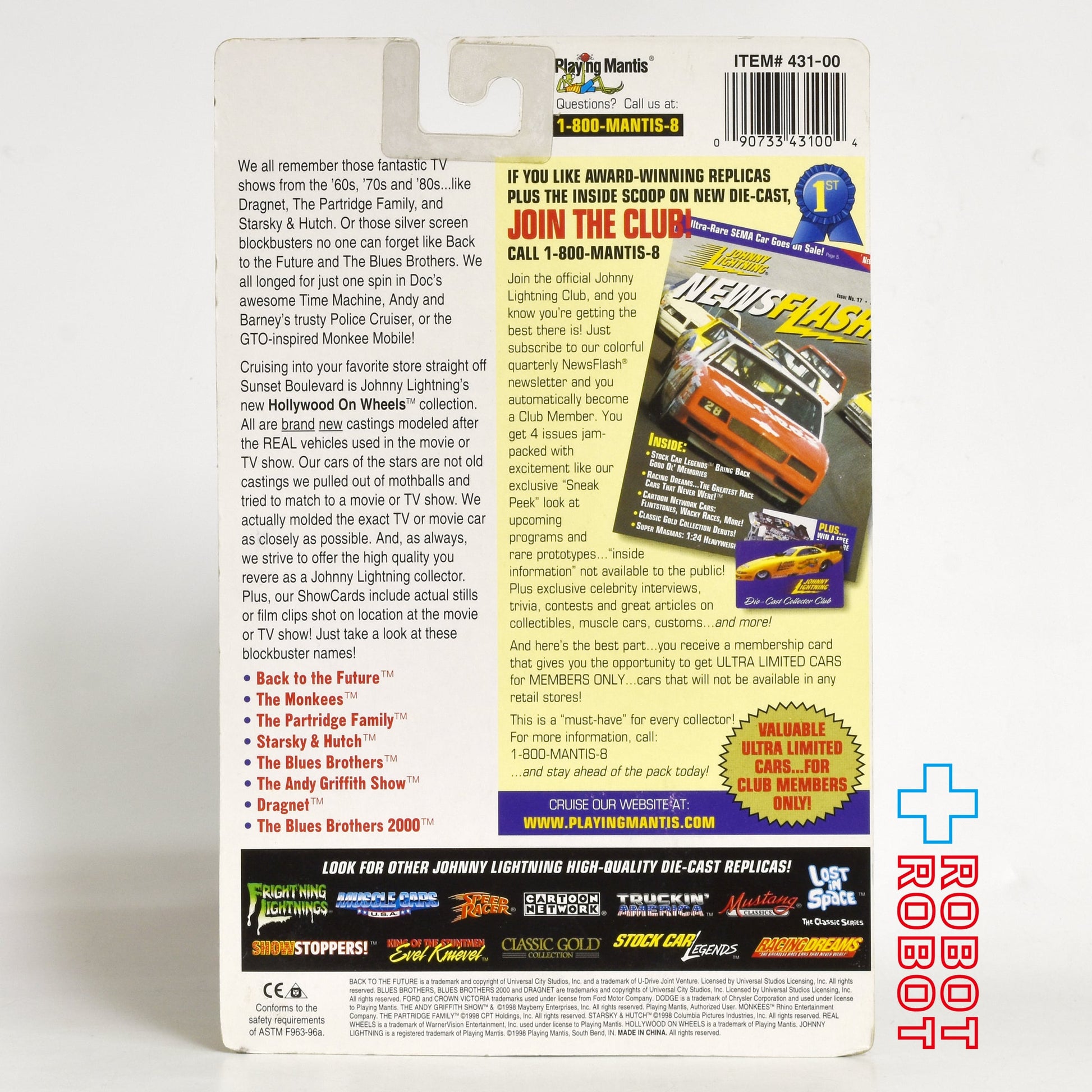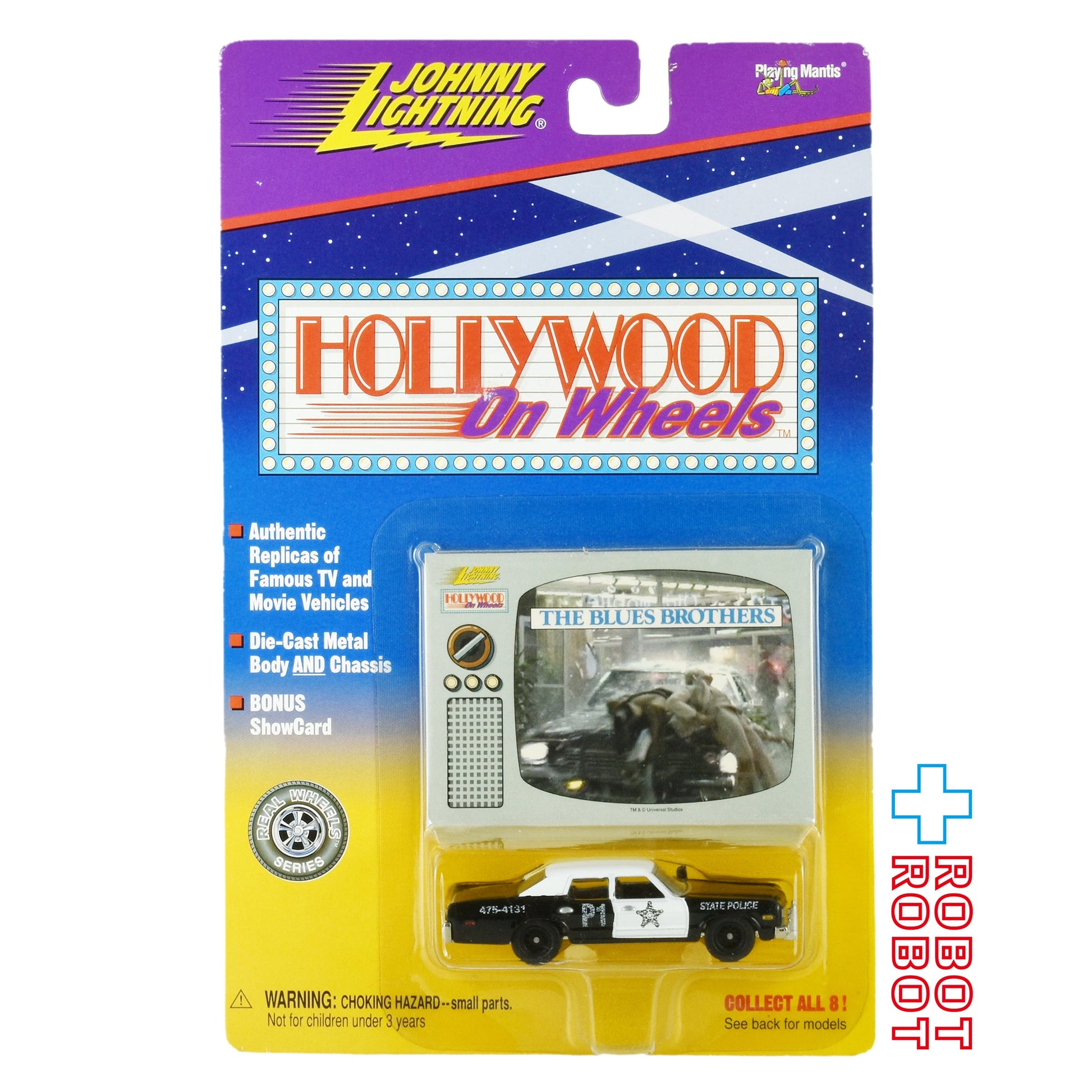 Johnny Lightning BLUES BROTHERS P1 Police Car Traffic Accident Show Card Die Cast Car MOC